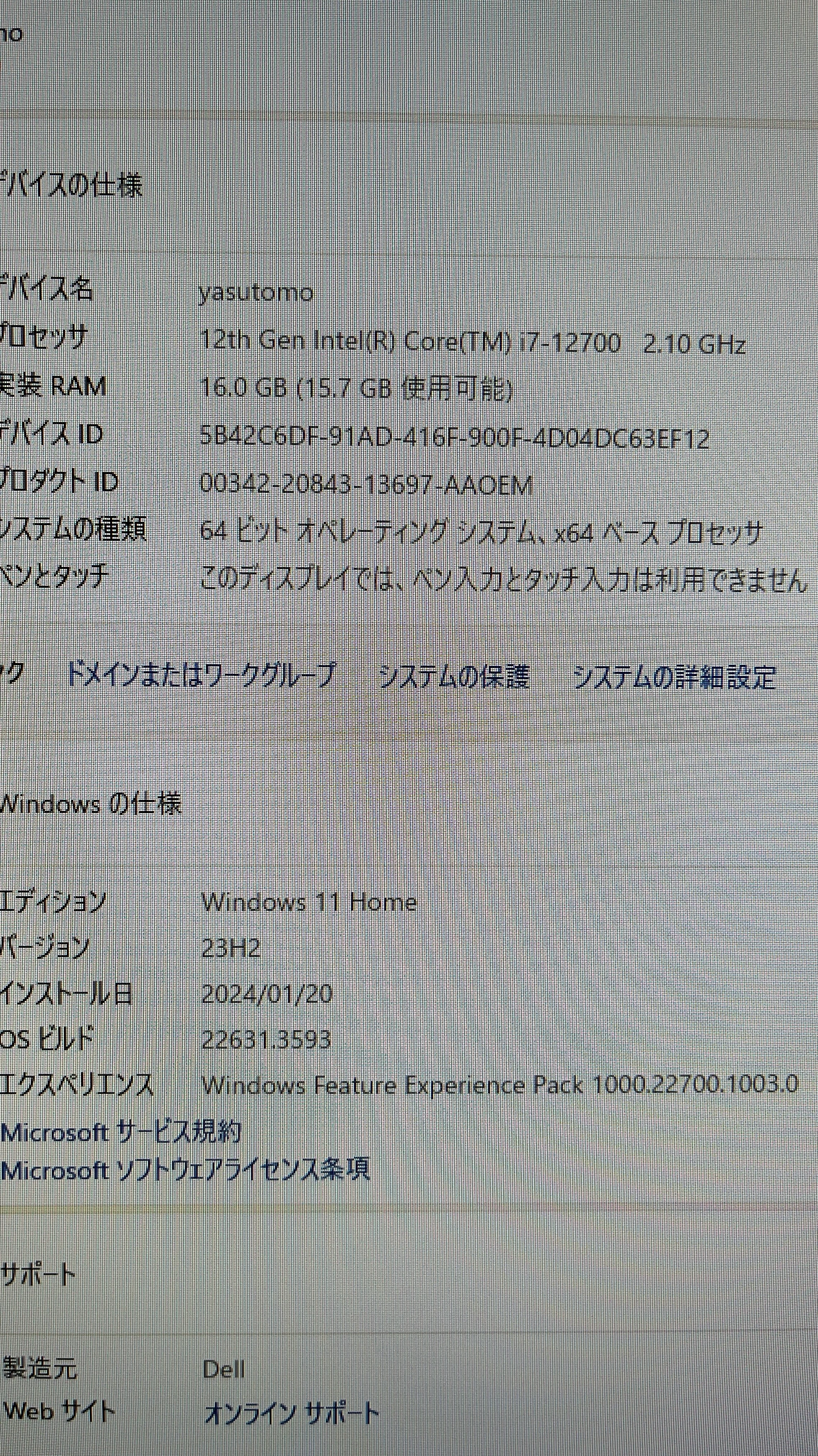 ・GPU(メーカー・型番、例;NVIDIA GeForce GTX3060、またはインテル HD グラフィックス 630等)