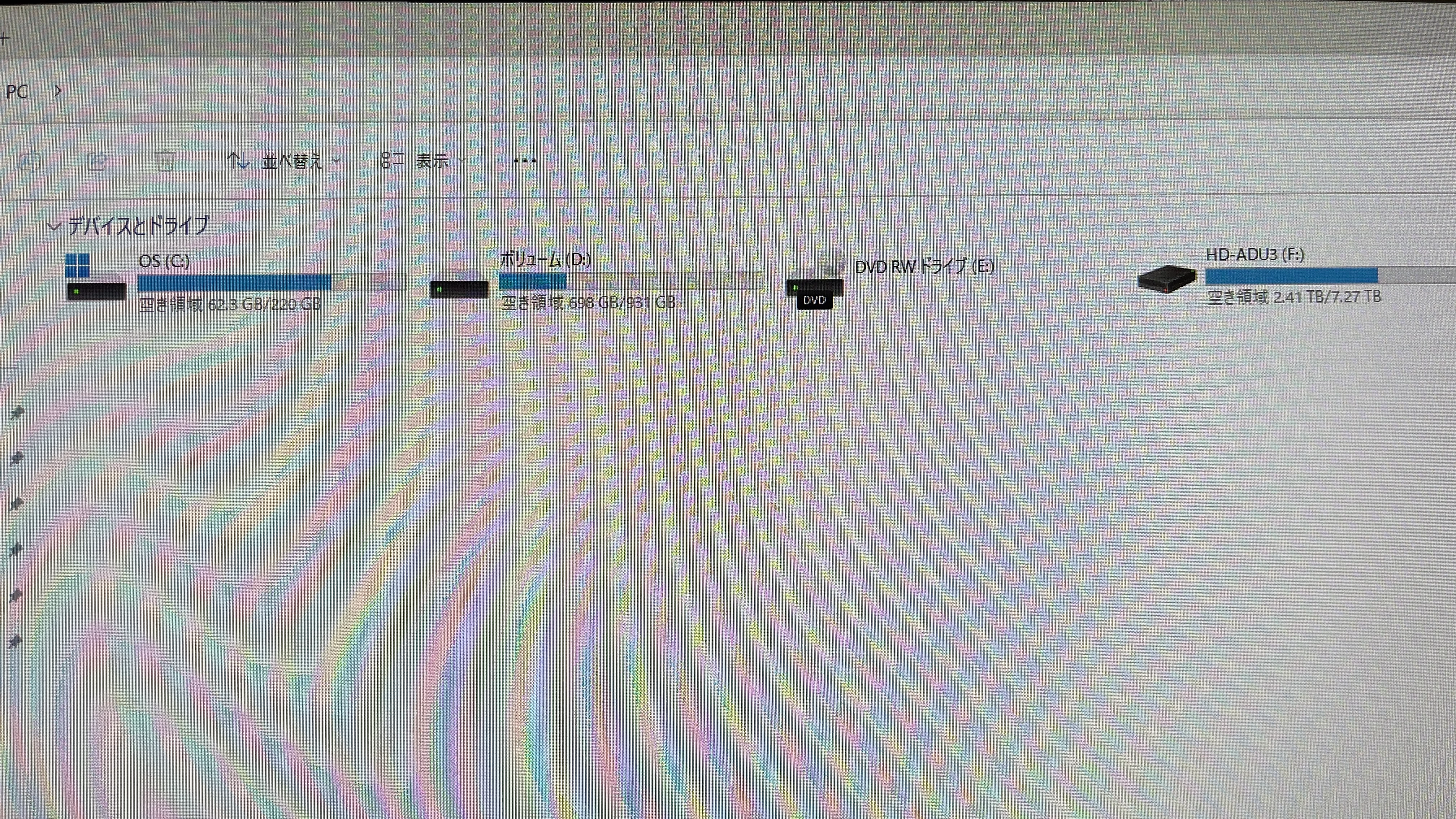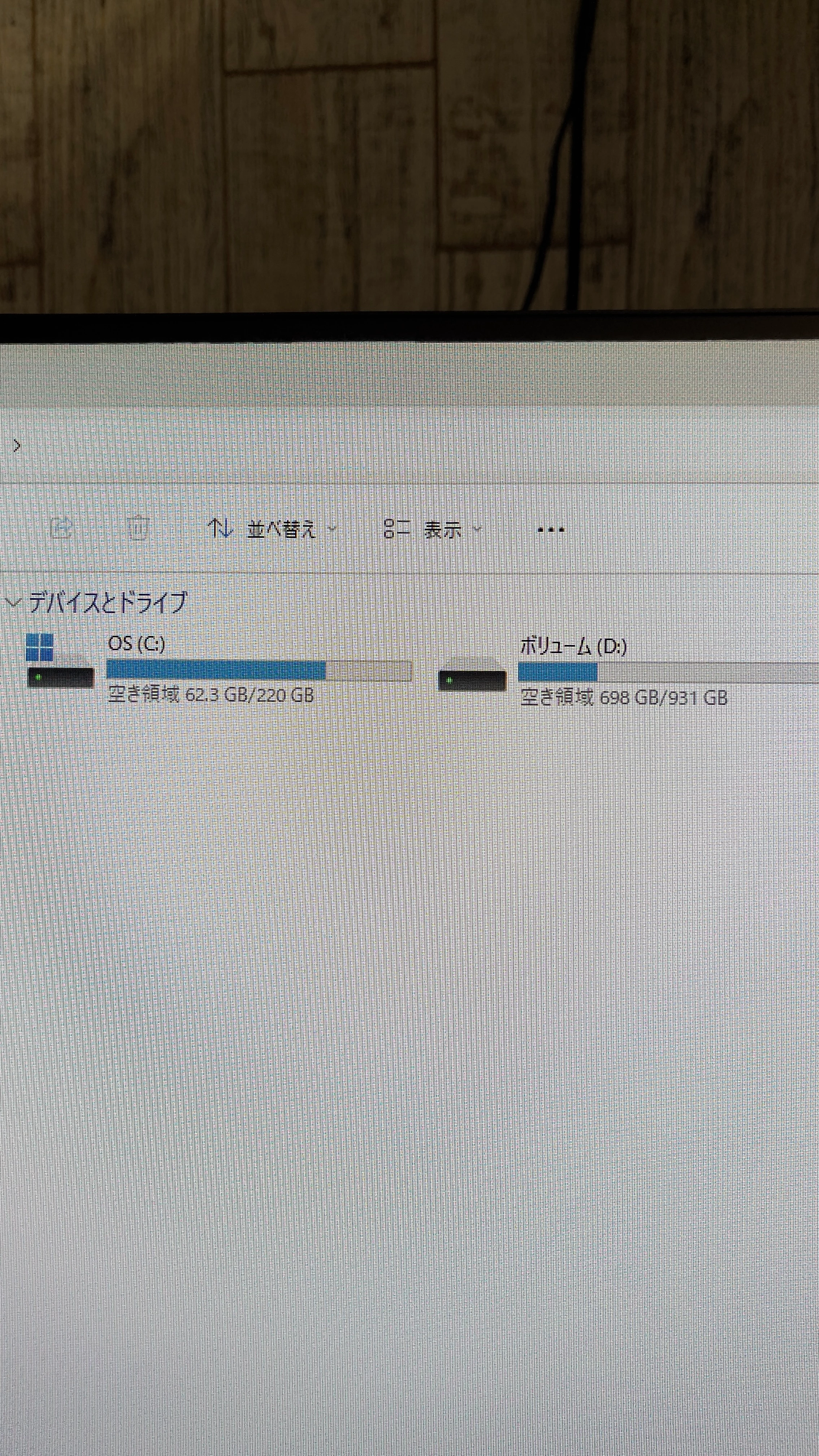 ・内蔵ストレージ(SSDまたはHDD、全容量/空き領域容量、例;Cドライブ SSD 1TB/325GB等)