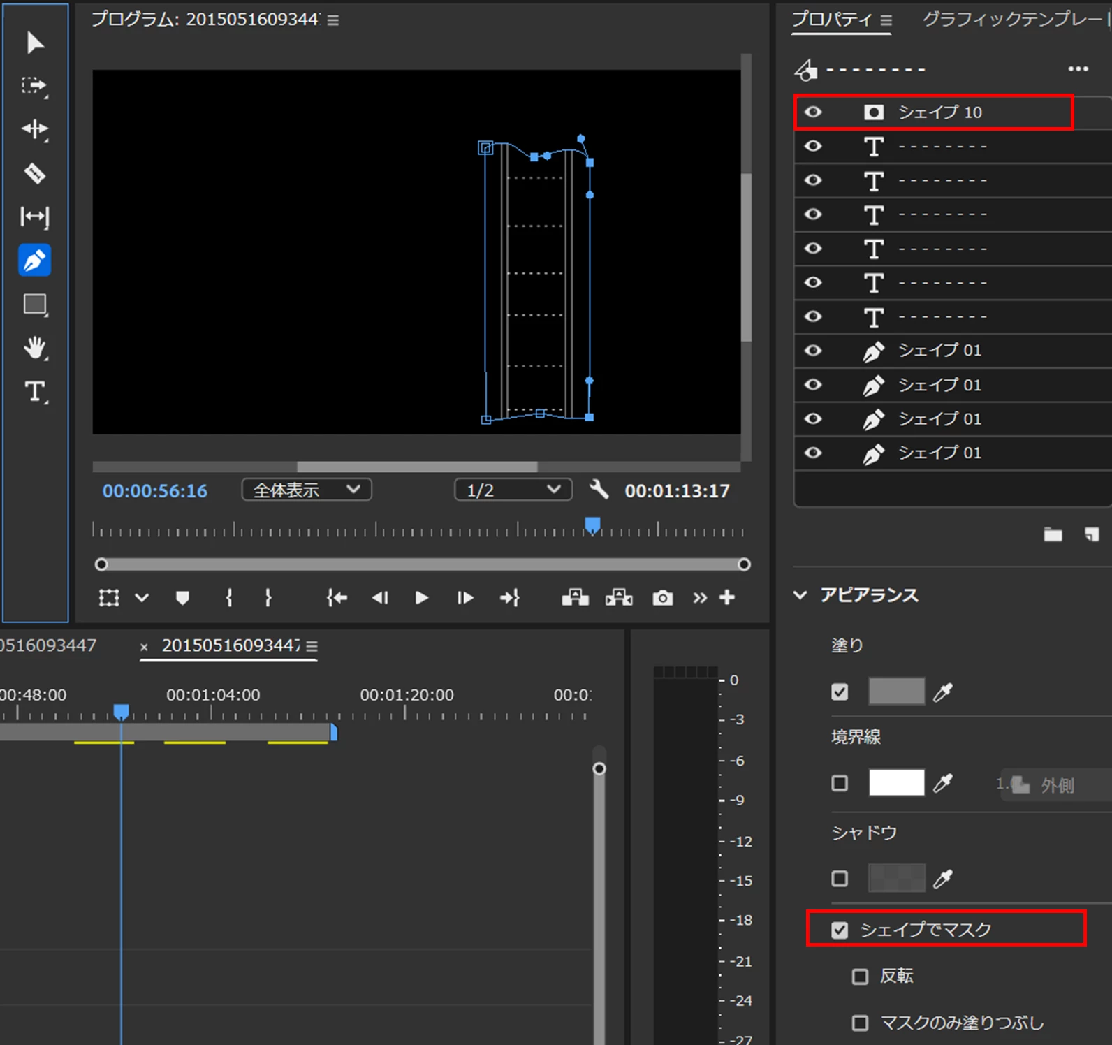 ②枠線を下から表示させるために、枠線にシェイプのマスクを作成します。