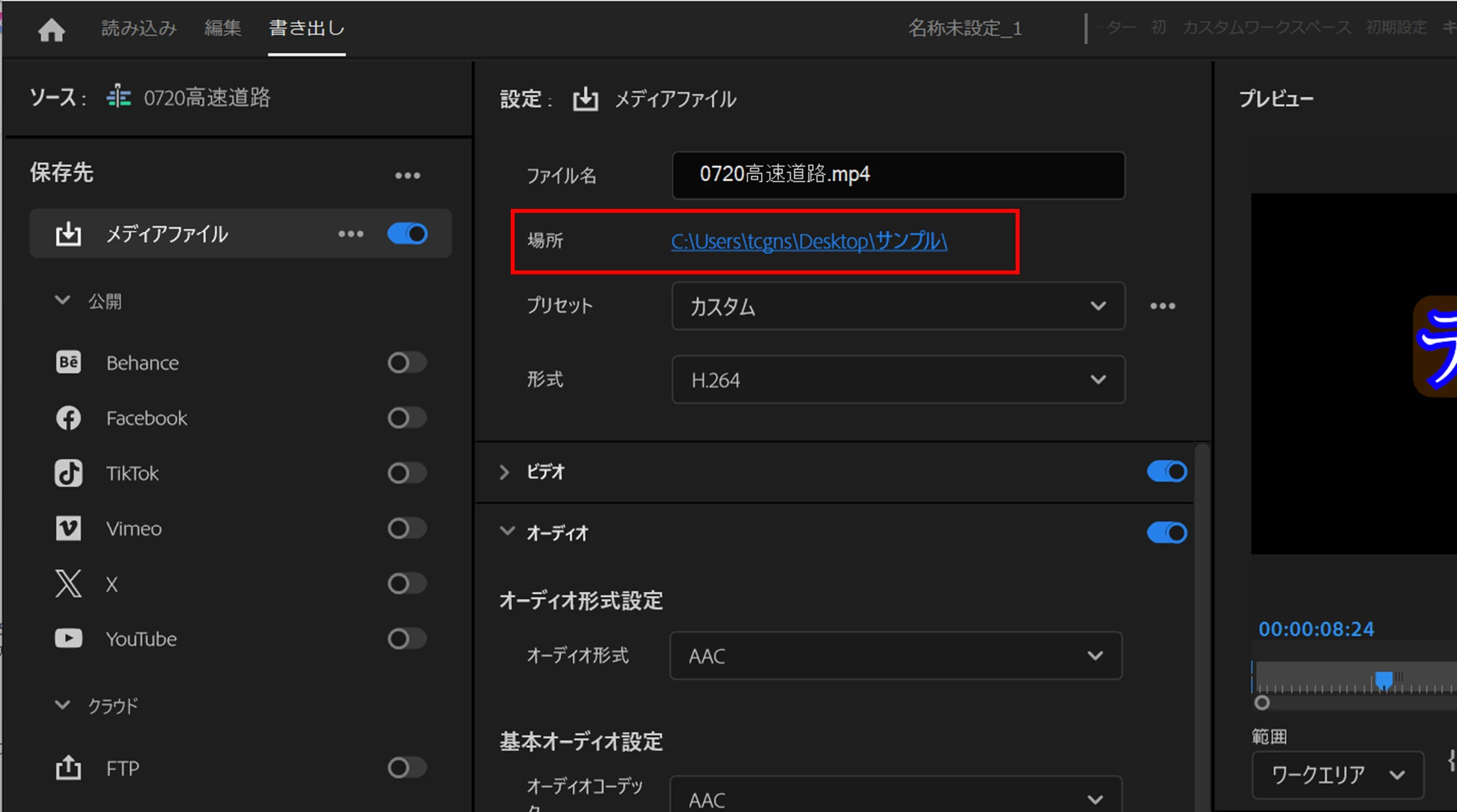 プレミアムプロでの書き出しの時、場所の項目が何も出ないので、いじる事ができません。