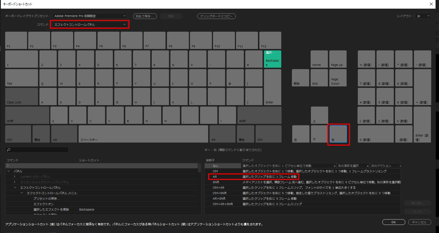 プログラムモニターでモザイクなどのマスクパスが矢印キーで移動してしまう