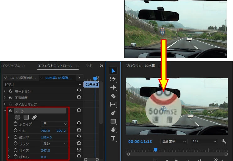 ※「ズーム」エフェクトは、「エフェクト」パネルの検索窓に「ズーム」と入力すれば表示されます。