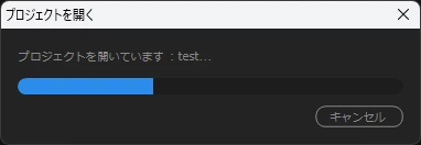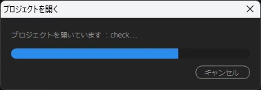 通常、問題なく開くプロジェクトでも開こうとすると添付画像②の位置(4割の位置)で止まります。