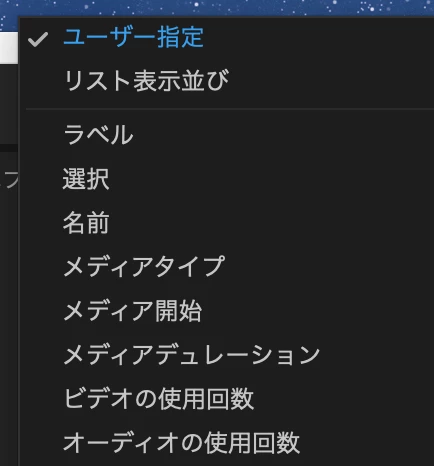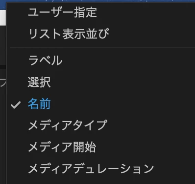 「素材を読み込んだ順」とは下図のメニューでどれが選択されていますか。