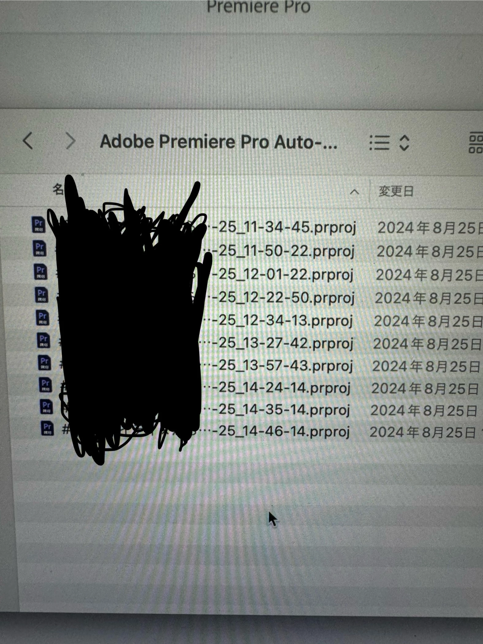 昨日、プレミアプロをアップデートしておる際にPCが落ちてしまい、その時に開いていたタイムライン上のものが全て開けなくなってしまいました。