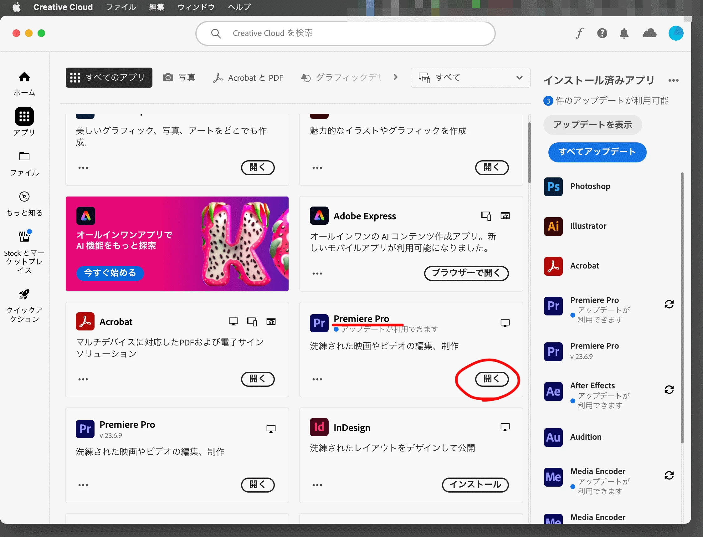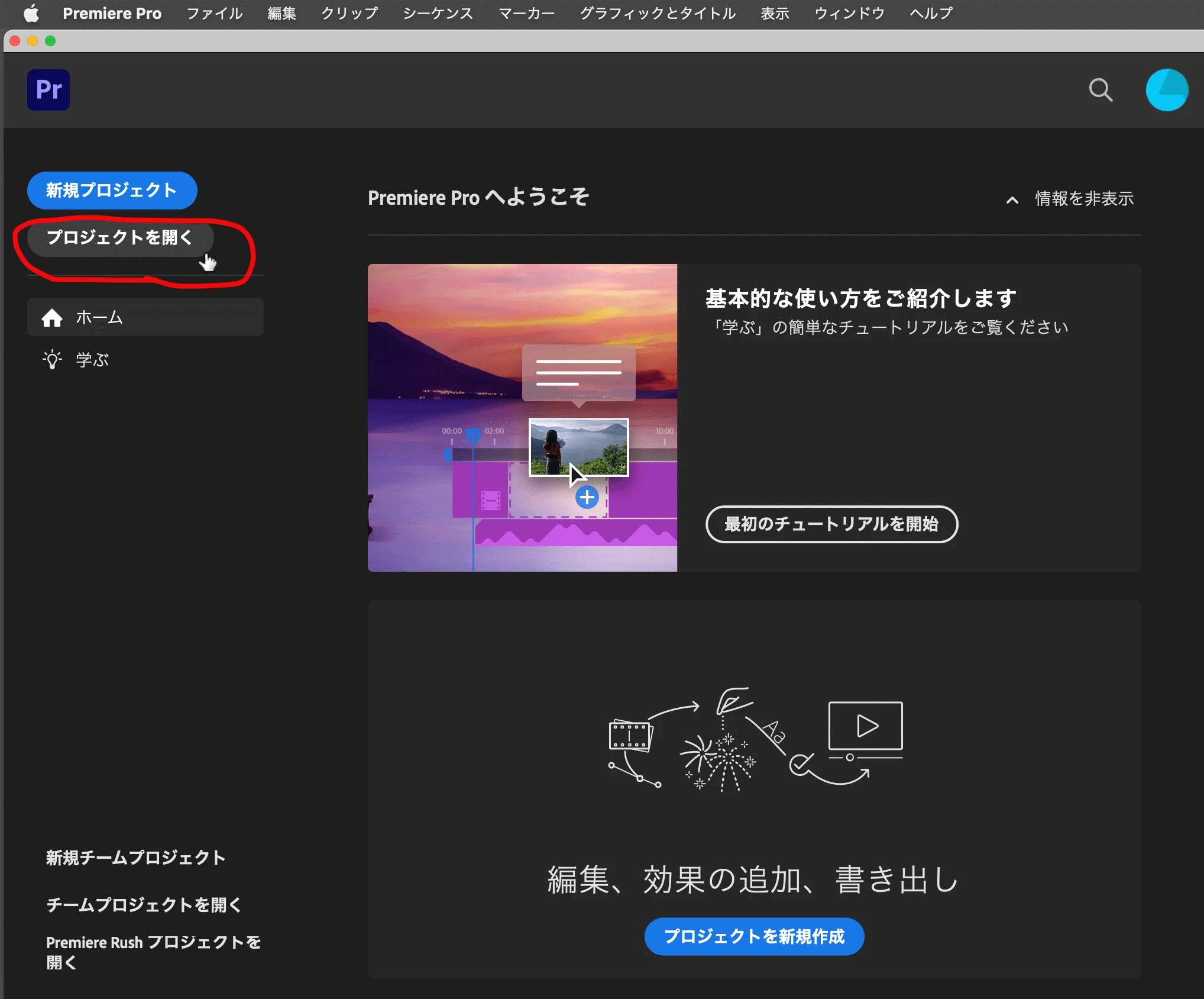 このように自動保存のプロジェクトファイルは残っているのですが、開いても該当するファイルは開かず、ただプレミアプロが起動するだけになります。