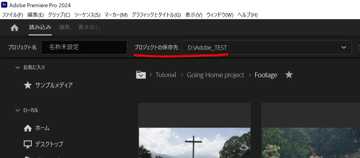 新規プロジェクト▶︎保存先から指定場所にしてもそこに入らず、