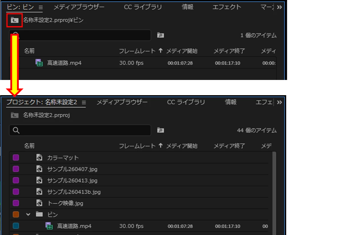 ビンをダブルクリックして展開、その後「ビンのパネル」だけを分離させたいんですが、