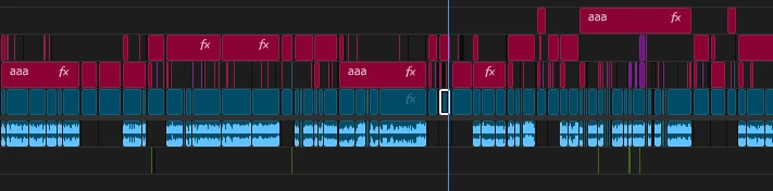 プロジェクトマネージャーでまとめたファイルを開いてみると、虫食いのように音声部分が消えてしまいます(添付画像参照)