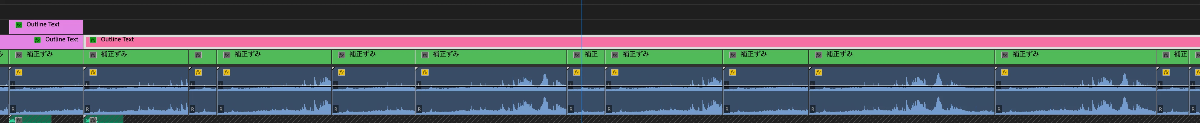 音声クリップがカット地点で全てクリップトップになっており、