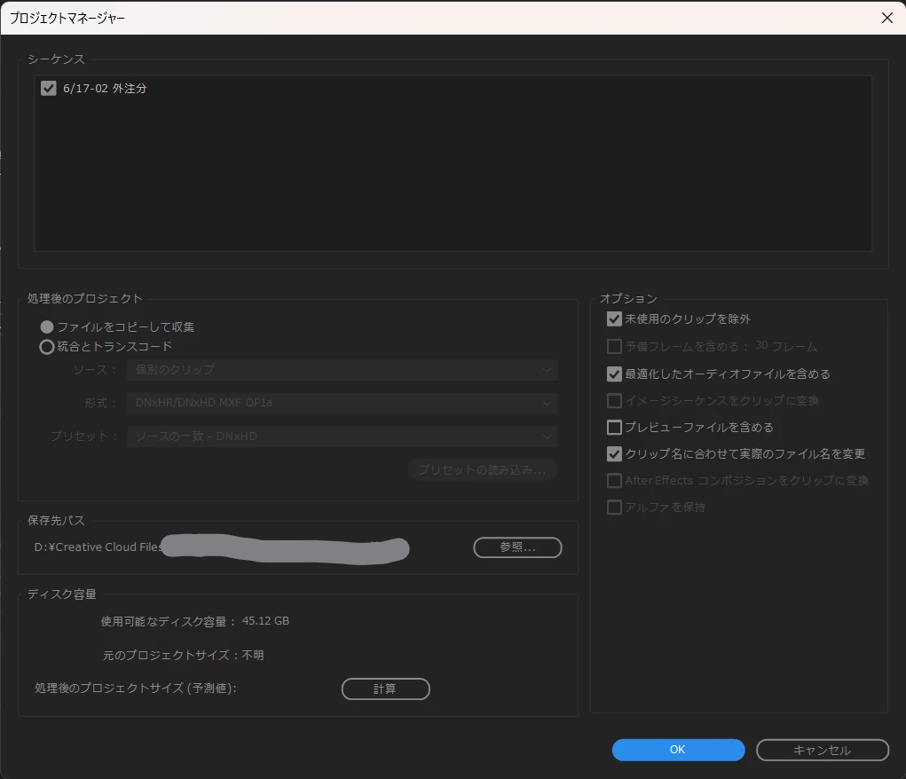 送付直後、プロジェクトマネージャーで書き出したプロジェクトファイルは自分が切り分けた動画が入っているのですが、