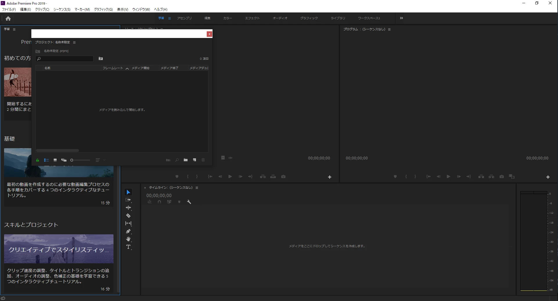 プロジェクトファイルを開くと最初に出ます。