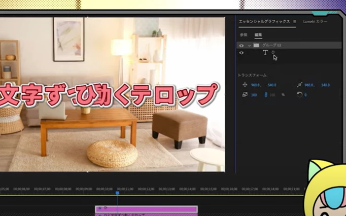 プレミアプロだけで一文字ずつ動かすエフェクトを作成するためです。