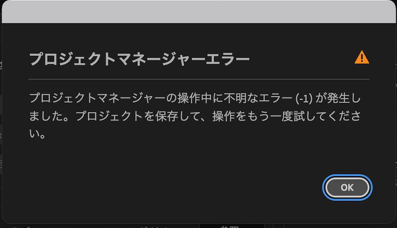 まずは一旦Premiere Pro を終了していただき、パソコンをシャットダウンしてから電源を入れ直し、再びPremiere Proを起動して該当プロジェクトを開いてお試しいただくといかがでしょうか。