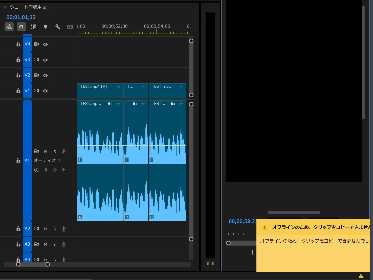 オフラインのため、クリップをコピーできませんでした。"動画名.mp4" というエラーメッセージが出たようです。