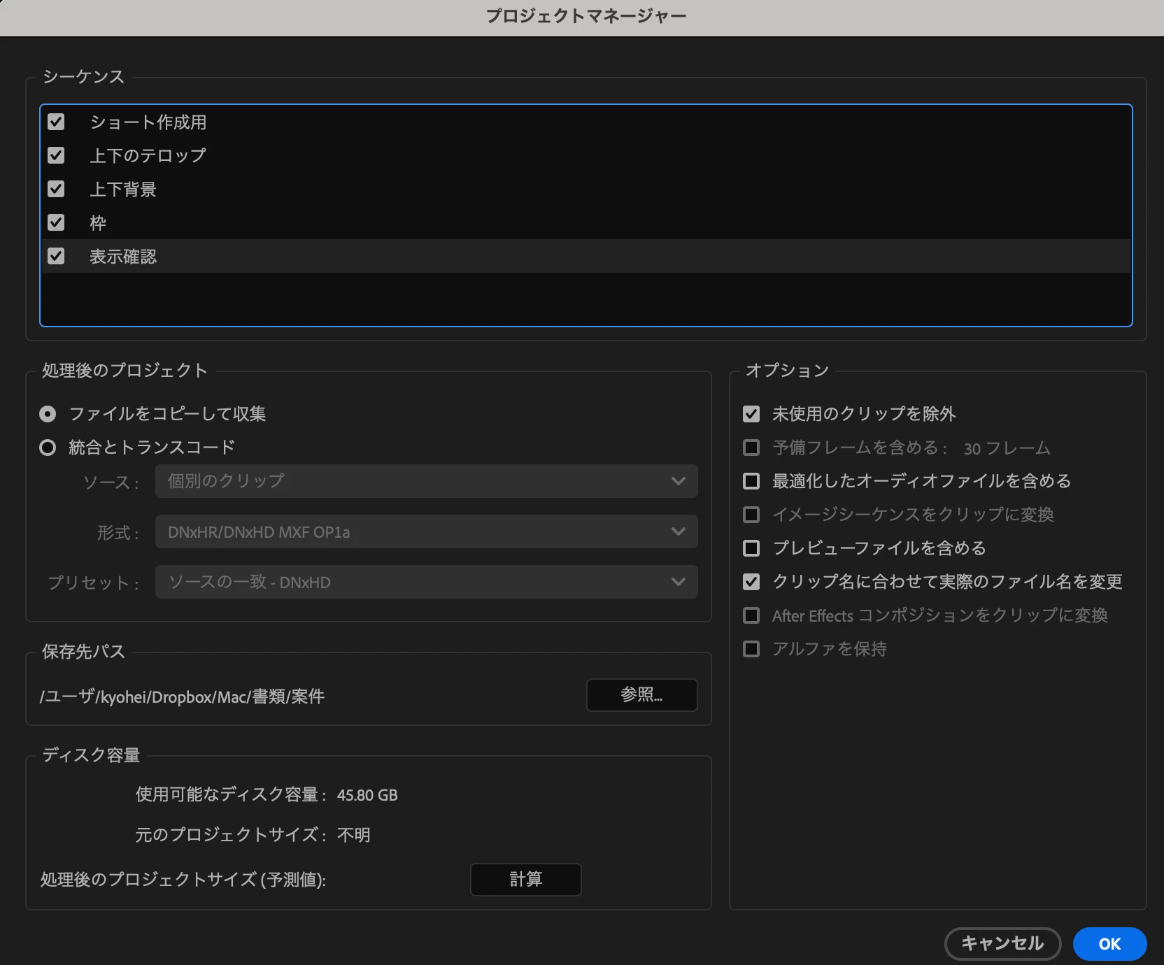 プロジェクトファイルを一旦閉じて、Premiere Proを再起動して開いてもメディアオフラインは出ないようです。プロジェクトマネージャを作成しようとしたら上記メッセージが出てプロマネ作成が出来ないようです。