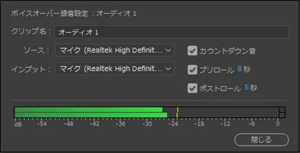 アフレコをしたいのですがボイスオーバー設定で開いてもびくとも音が入りません。