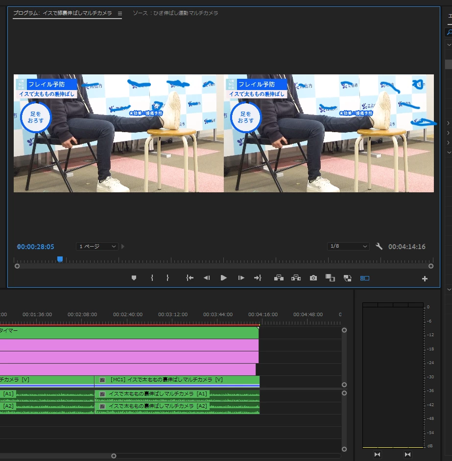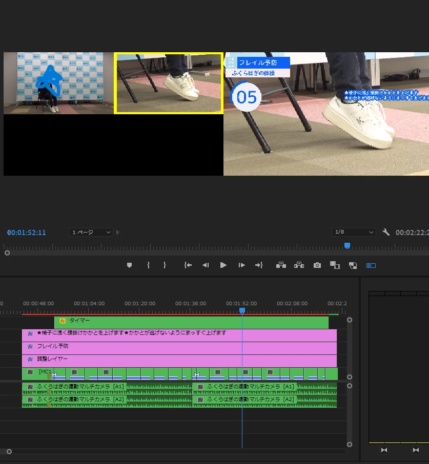 マルチカメラを使って編集しています。マルチカメラシーケンスを作り、モニターの表示をマルチカメラにすると、右側に大きな映像、左側に小さく2台のカメラの映像が二つ横に並んで表示されると思います。一つのプロジェクトに20こくらいのマルチカメラシーケンスを作っているのですが、マルチカメラの表示が正しくできるものと、同じものが二つ並ぶだけのものがあります。