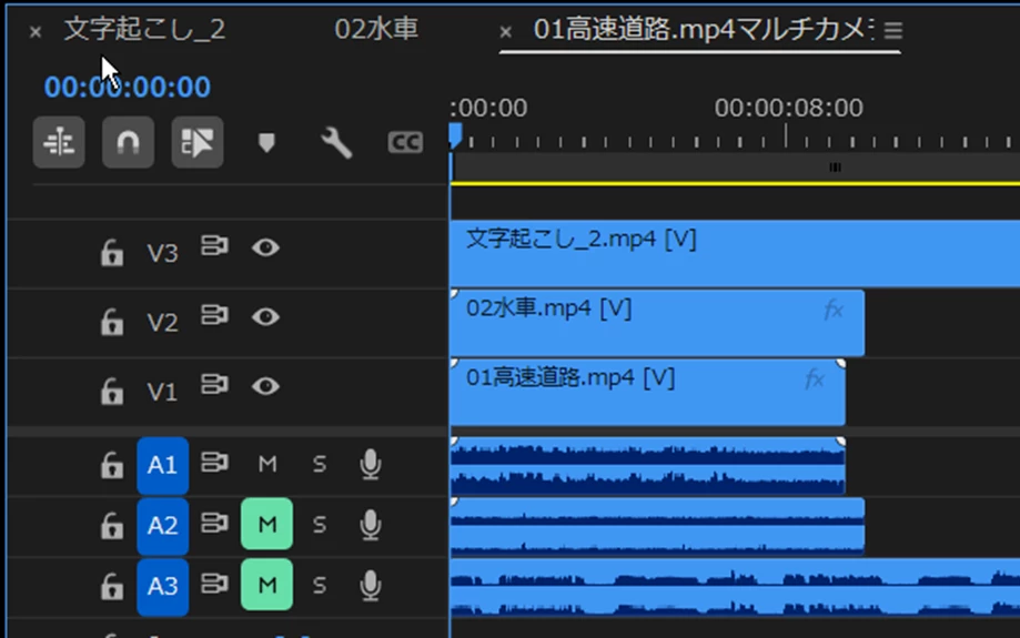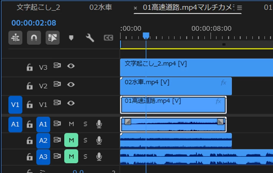 マルチカメラをタイムラインで見ると波形は表示されているのですが、