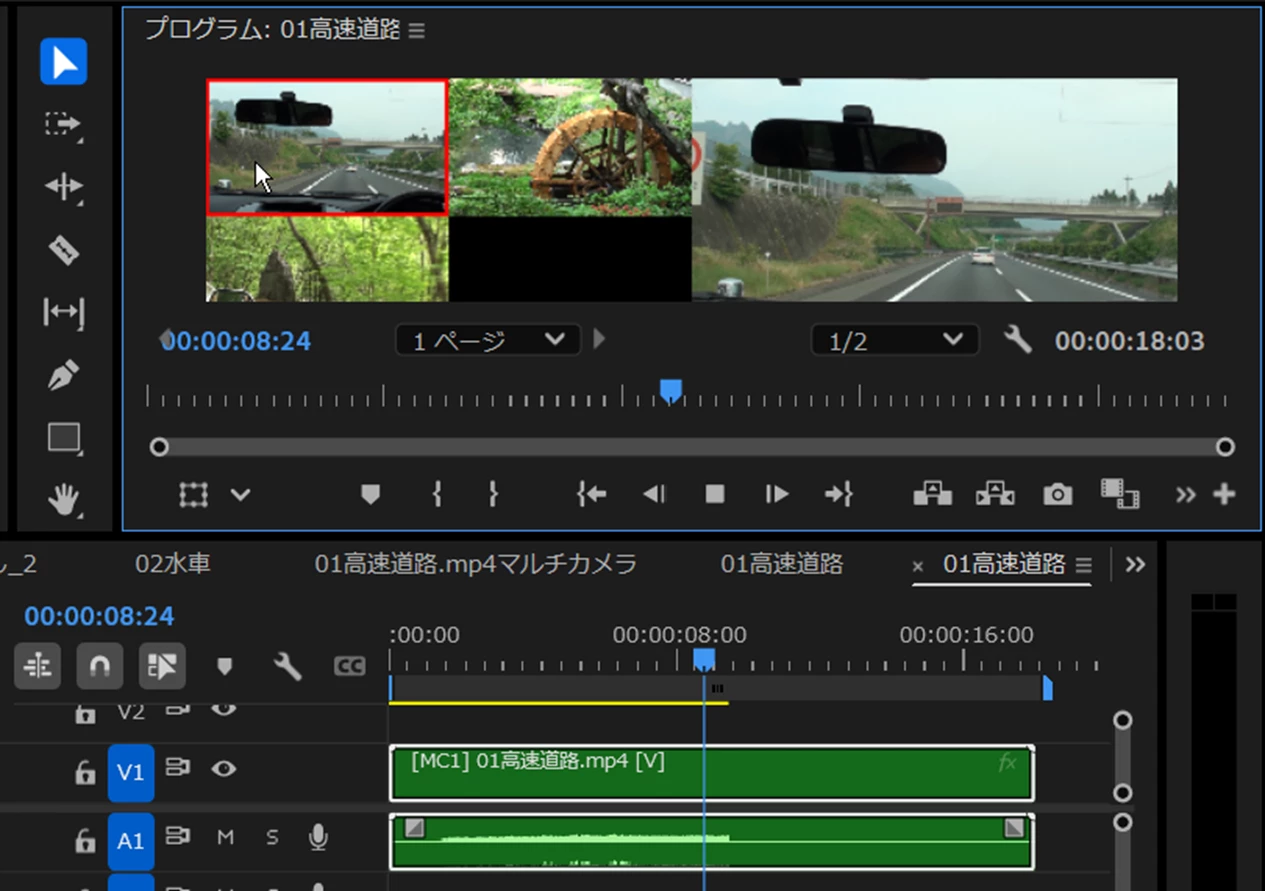 ④マルチカメラ編集を行っている最中ですが、正常にマルチカメラ編集がで来ています。