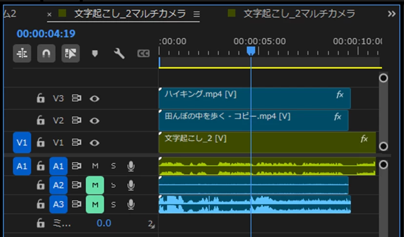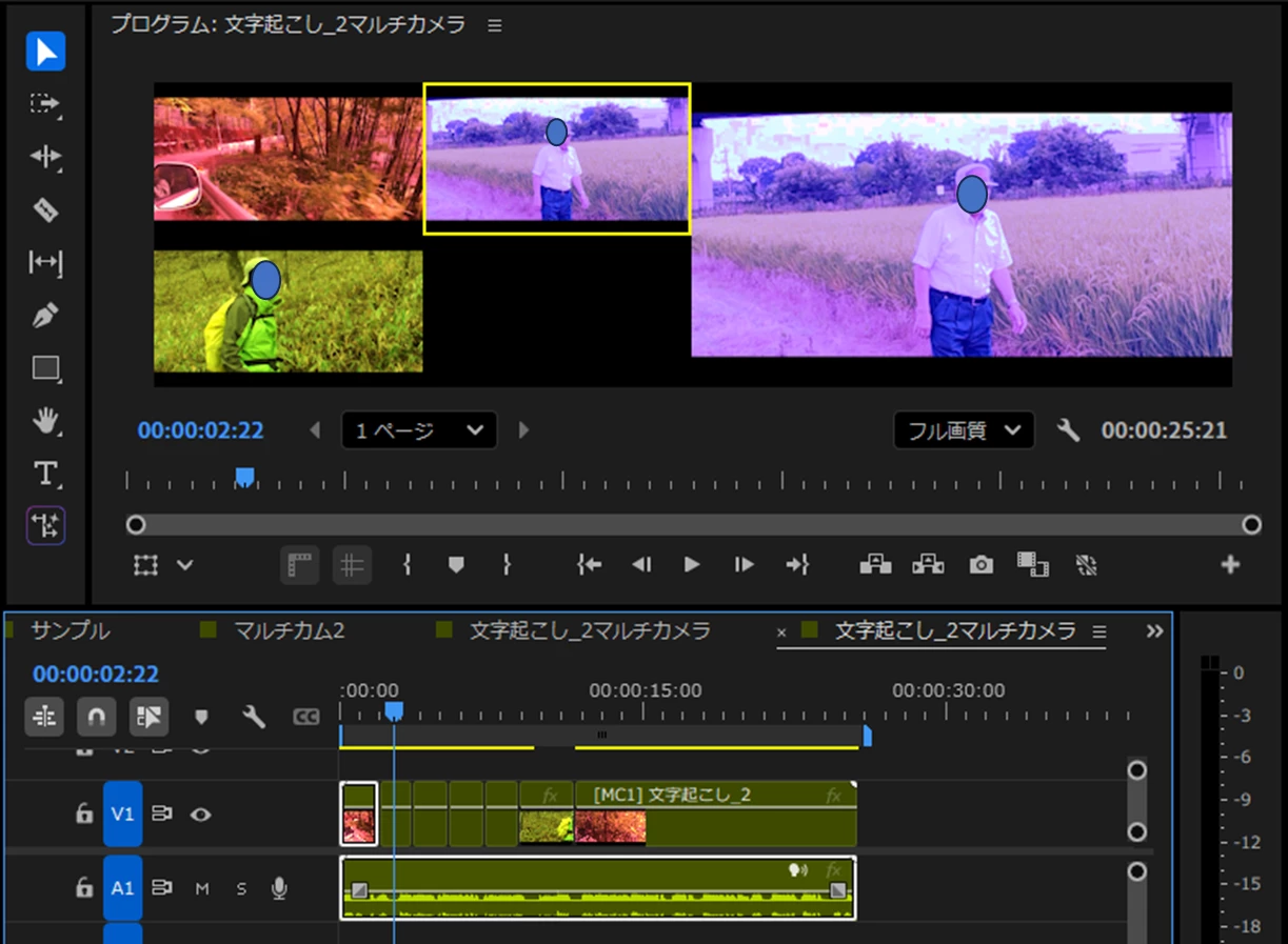 マルチカメラのクリップではなく、ソースシーケンス内のクリップに直接かけているのですが