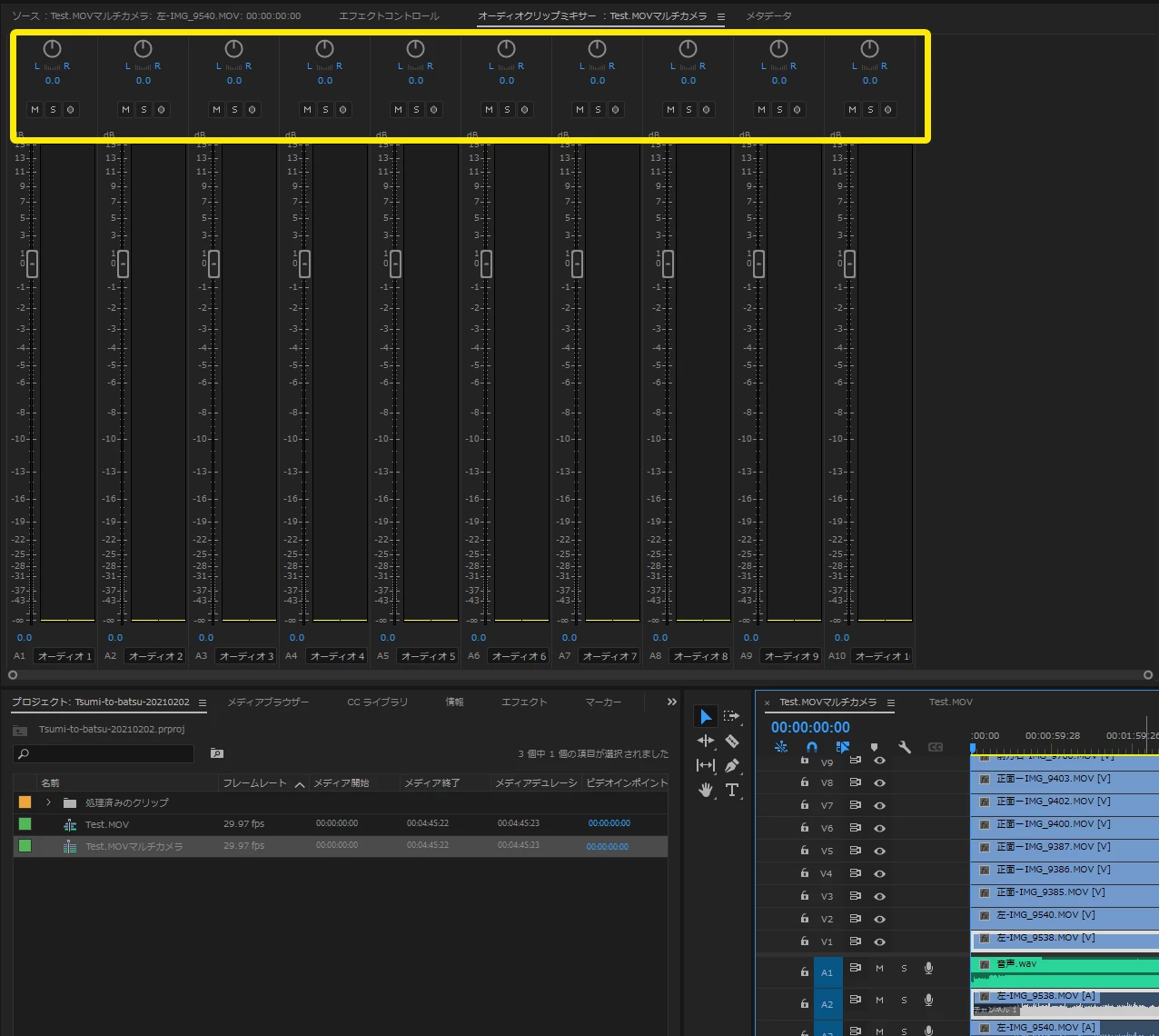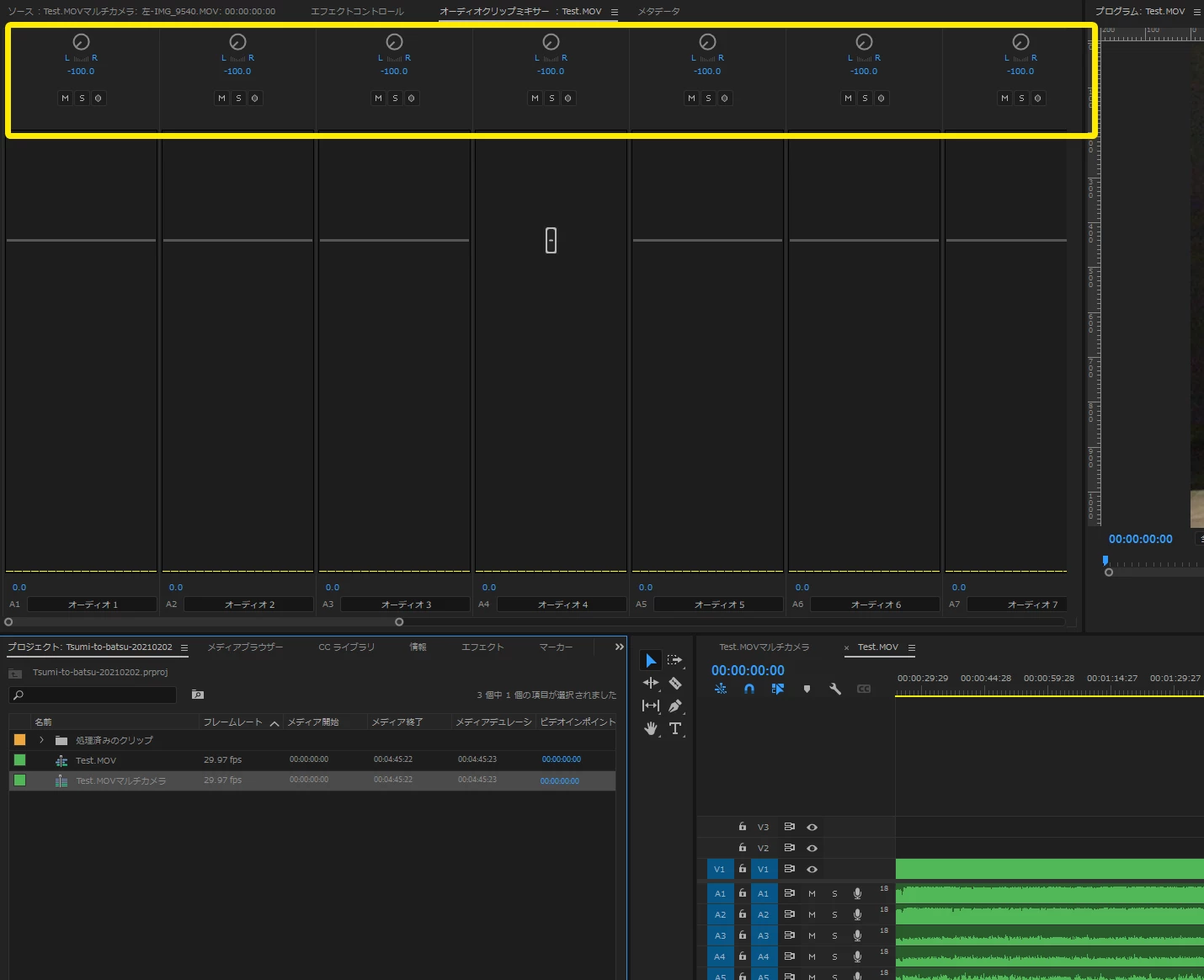マルチカメラシーケンスを作成して、カメラの切り替えも数箇所した状態です。