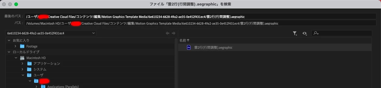 対象のファイルは拡張子はAfter Effectsのaegraphicファイルです。