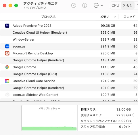 件名の通り、Premiere Proを使用していると永遠とメモリ使用量が増えます。