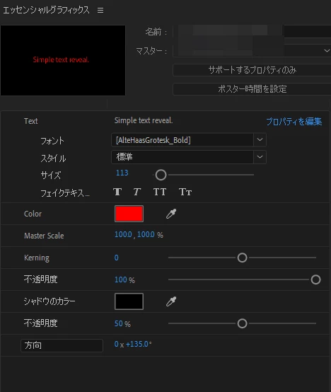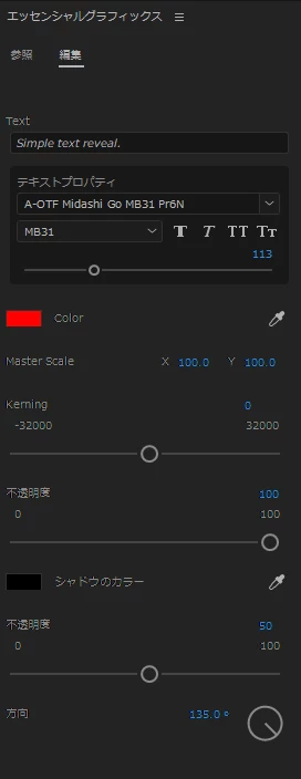 色々なサイトでフリーのモーショングラフィックステンプレートなどが配布されていますが、ダウンロードして適応すると、フォントは自由に変更できるものの、通常のテキストと違い、フォントに影や縁をつける項目が見当たりません。