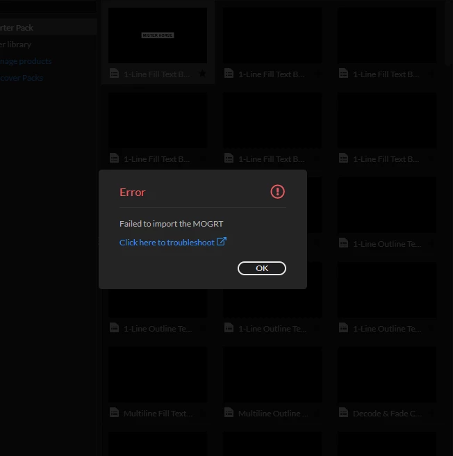 昨日まで普通に使えていたモーショングラフィックスが使えなくなり(スクショ1参照:PremiereComposerを使用しようとした際)