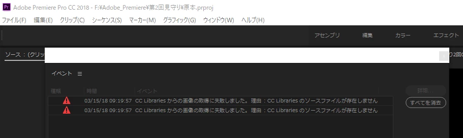 ライブラリーにある画像を使用するとエラーがでる。添付図CCLibrariesからの画像の取得に失敗しました。と出ます。