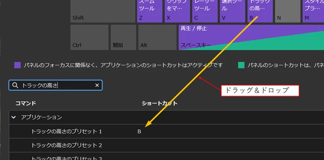 ※説明のためV1のみマウス操作で高さを変えていますが、Shiftキーを押しながらこの操作をすると、すべてのVトラックの幅が広がります。お好みに合わせて、トラックの縦幅を広げるショートカットをお使いいただいたり、ちょうど良い高さのプリセットもご活用いただければと思います。