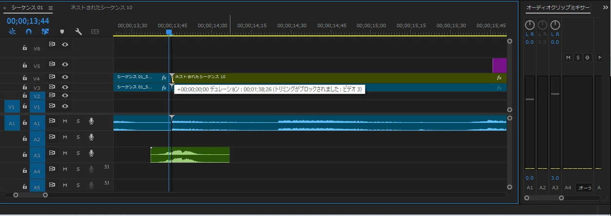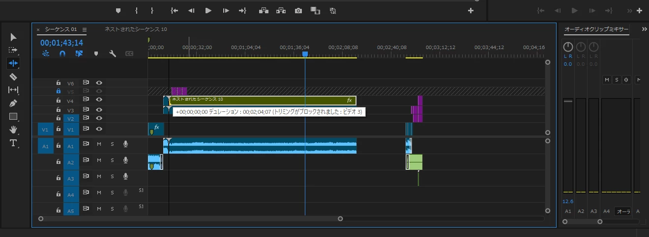 リップルツールを使用した際、「トリミングがブロックされました」と出てビデオの開始位置が調整できない。
