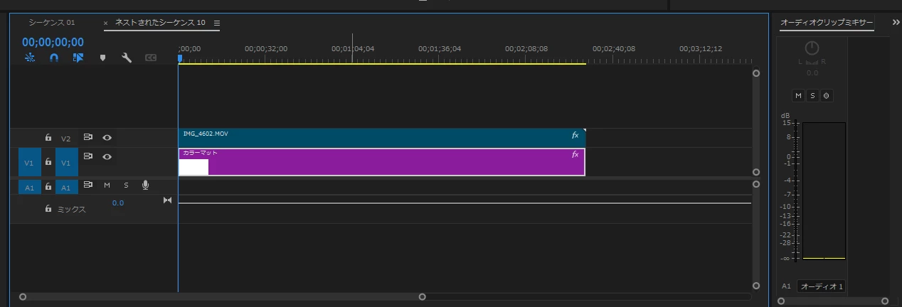 しかし、トリミングでどんどん詰めてゆき、隙間が無くなると、それ以上V1のクリップ2が左側に動けなくなるので、ブロックされます。