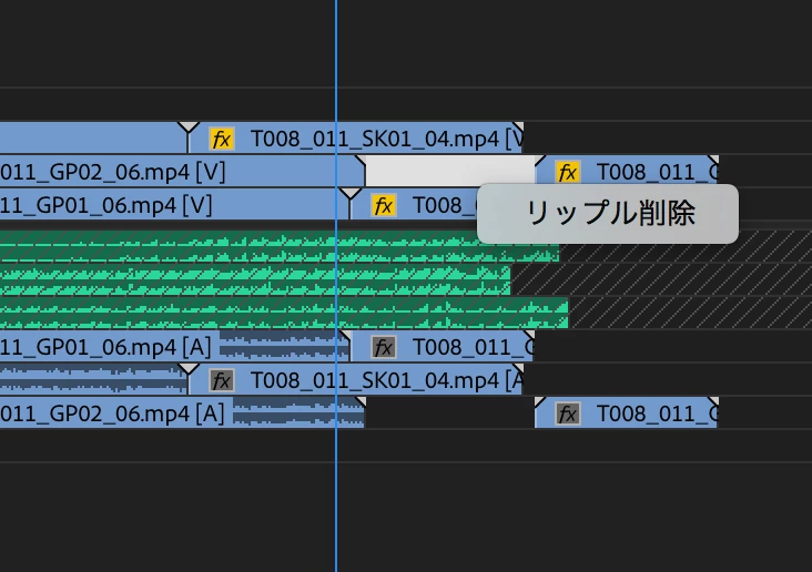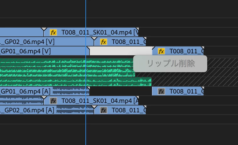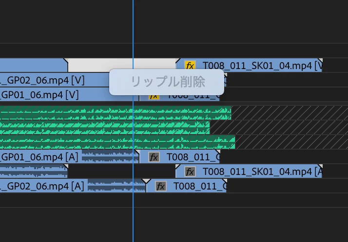 ちなみに使用できない場合は右クリックでリップル削除を表示するとグレーアウトしている状態です。