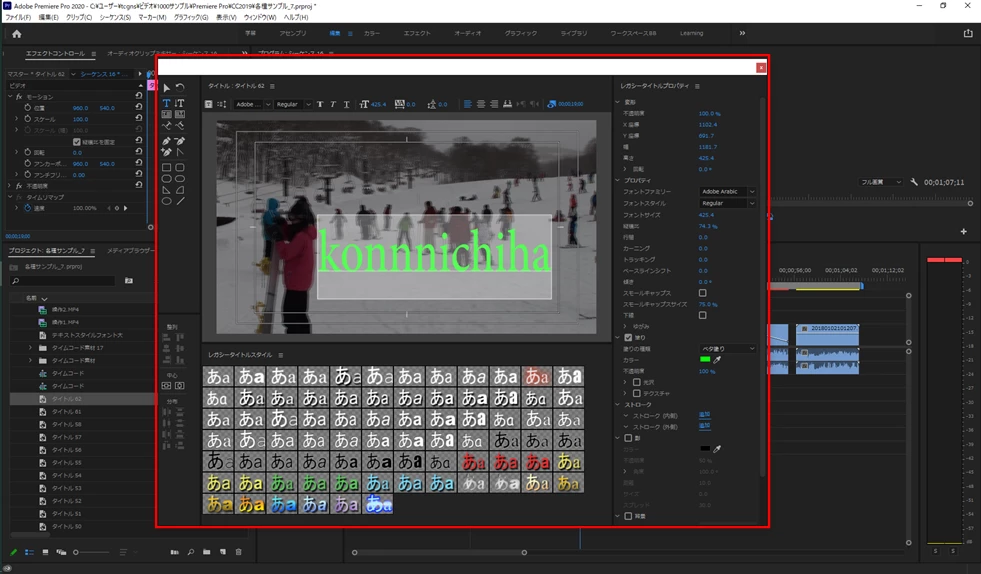 ビデオトラックでレガシータイトルクリップをダブルクリックして「レガシータイトル」ウィンドウを開き、編集終了後「×」をクリックすれば、「レガシータイトル」ウィンドウは閉じ、編集結果はレガシータイトルクリップに反映されています。