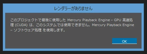 レンダラ―がありません GPU処理が使用できなくなりました。