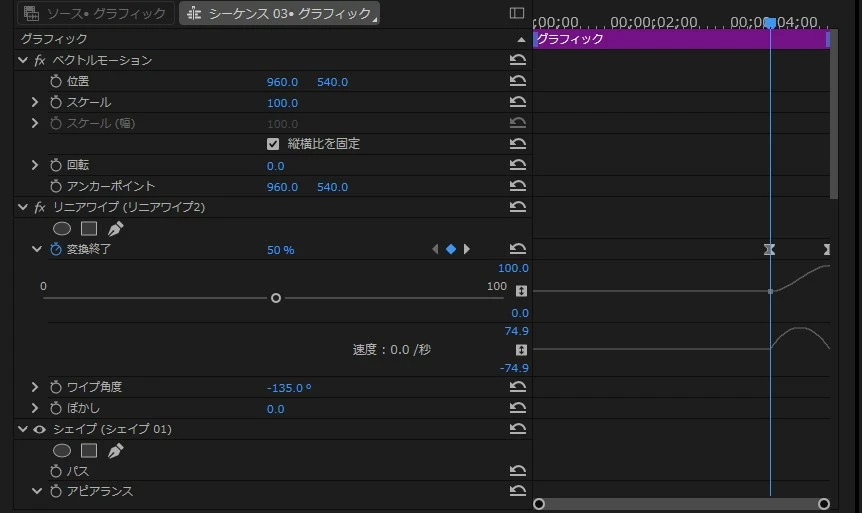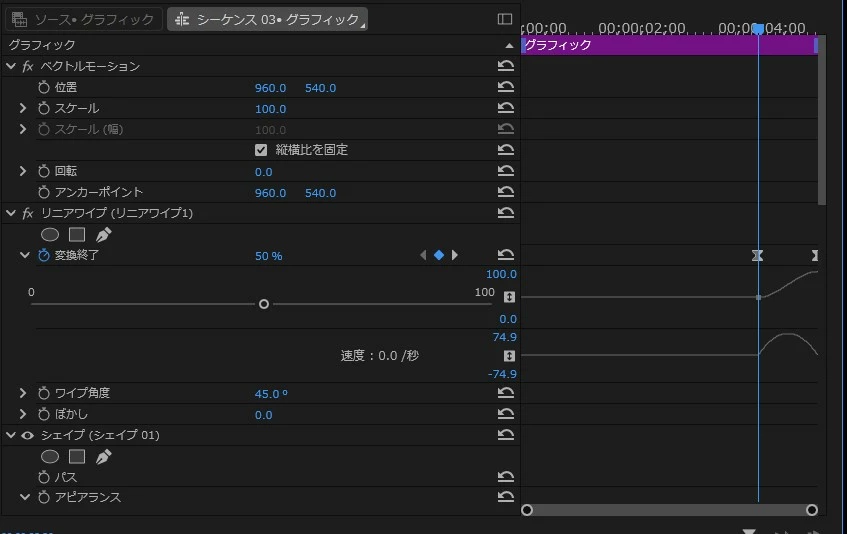 すると、ワイプ開始時間にキーフレームが作成されます。