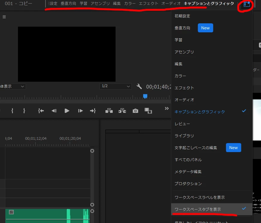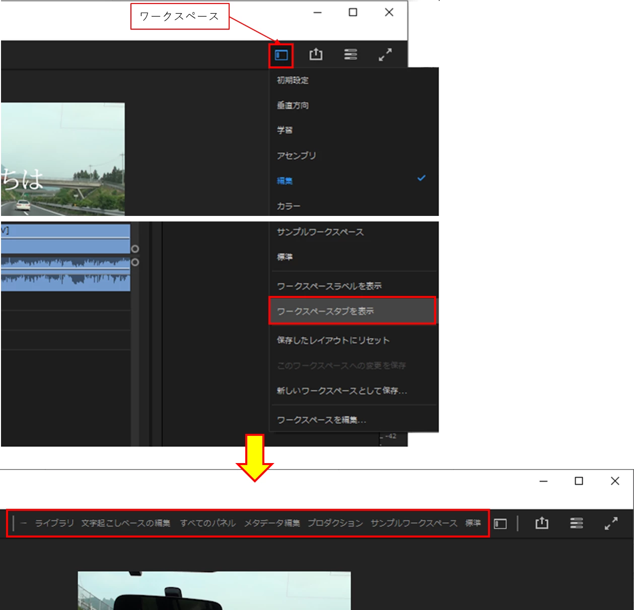 ワークスペースアイコンをクリックしていただくと、ワークスペースのタブも表示できるという意味合いで返信したつもりでおりました。