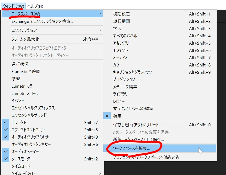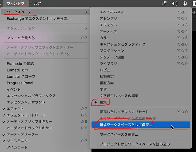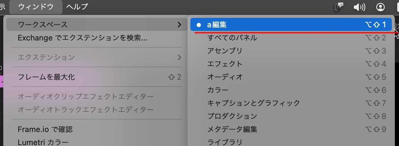 (画像はMac版のPremiere Pro v.23.6.4です。Windows版のPremiere Pro v.24.1.0では、同様の手順を踏んでも、1番目ではなく3番目に表示されました。)
