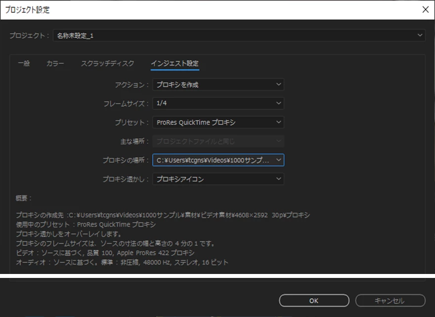 インジェスト設定のことは知りませんでした。これは、素材を取り込むと自動でプロキシを作成するという設定ですよね? インジェスト設定をせず、プロジェクトパネルにある素材を右クリックから「プロキシを作成」しても同じですよね?