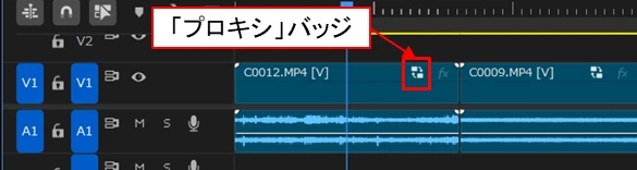 プロキシファイルが作成されているクリップには「プロキシ」バッジが表示されます。「プロキシ」バッジはクリップの長さが短いと表示されません。