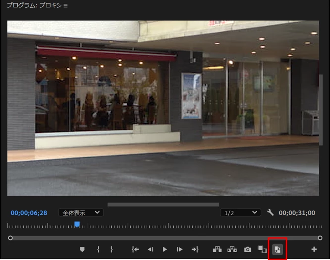 *「プログラムモニター」下部の「トランスポートコントロール部」に「プロキシの切り替え」アイコンを表示しておくと便利です。