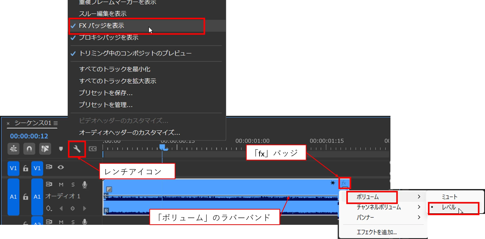 現在のPremiere Proには、ナレーションの部分のBGMの音量を自動的に下げる自動ダッキング機能が搭載されています。
