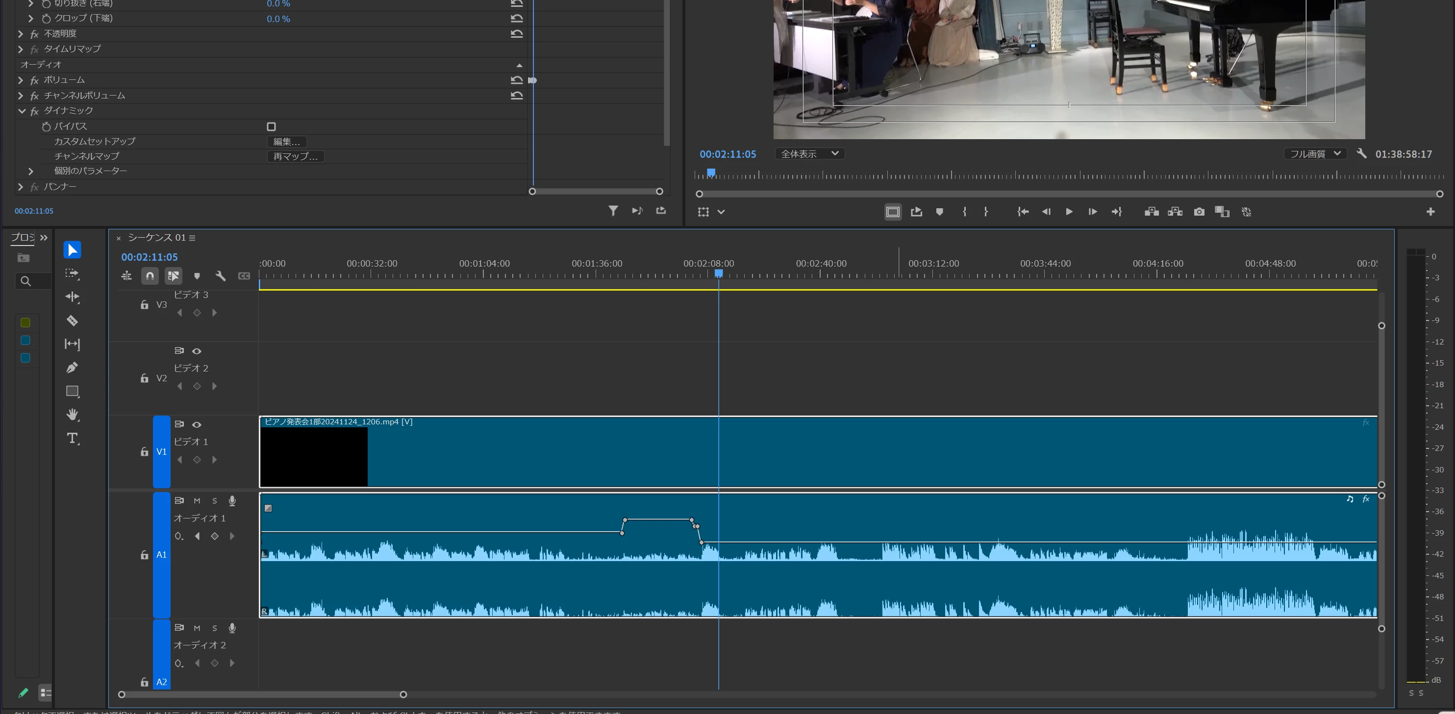 開始から2分40秒位まで、ピアノの演奏ではなくマイクでのアナウンスが入っているのですが、その部分の音を大きくしたいです。