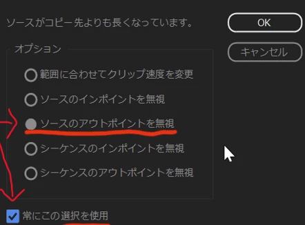 >(「環境設定」の「タイムライン」で、ペースト範囲を調整ウィンドウを表示させる設定に戻すことができ>ます。)