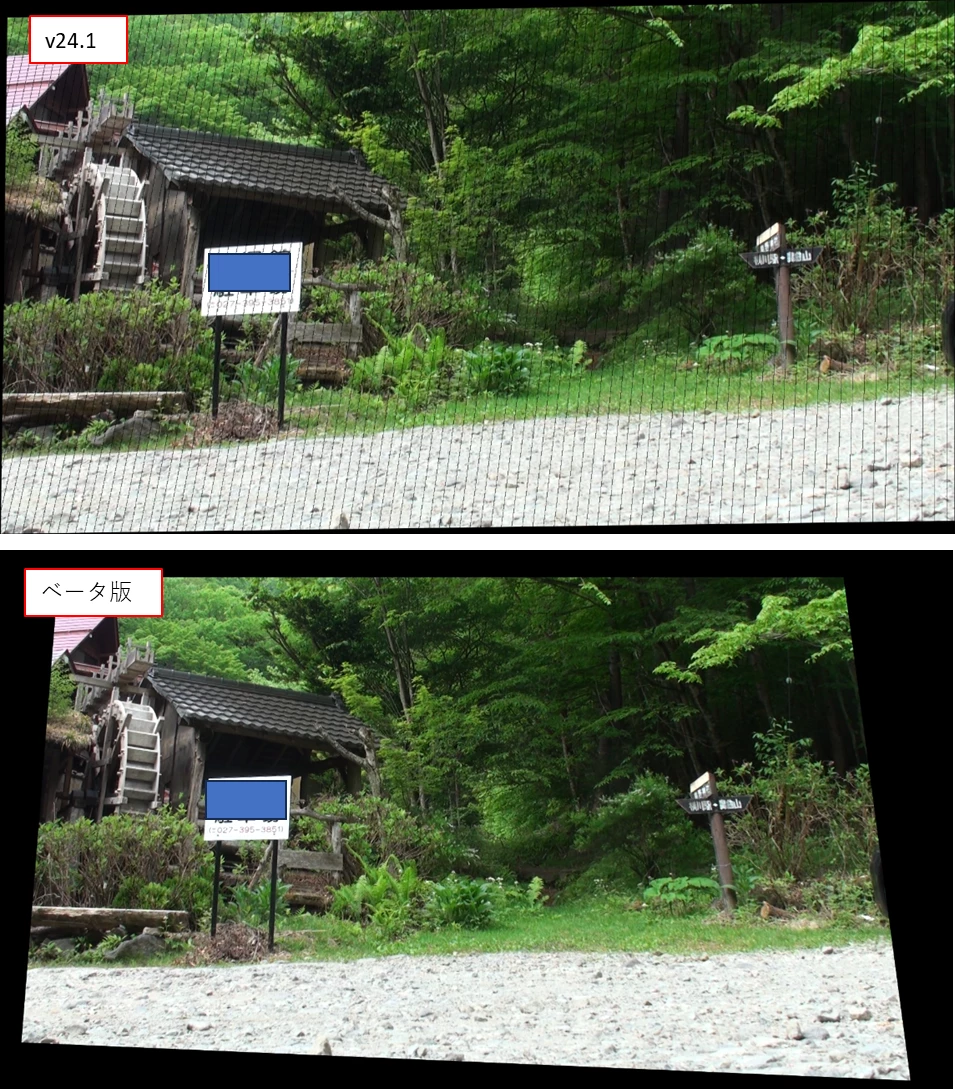 不具合? Ver.24.1.0で エフェクト、コーナーピンを使用すると黒い線が描画される