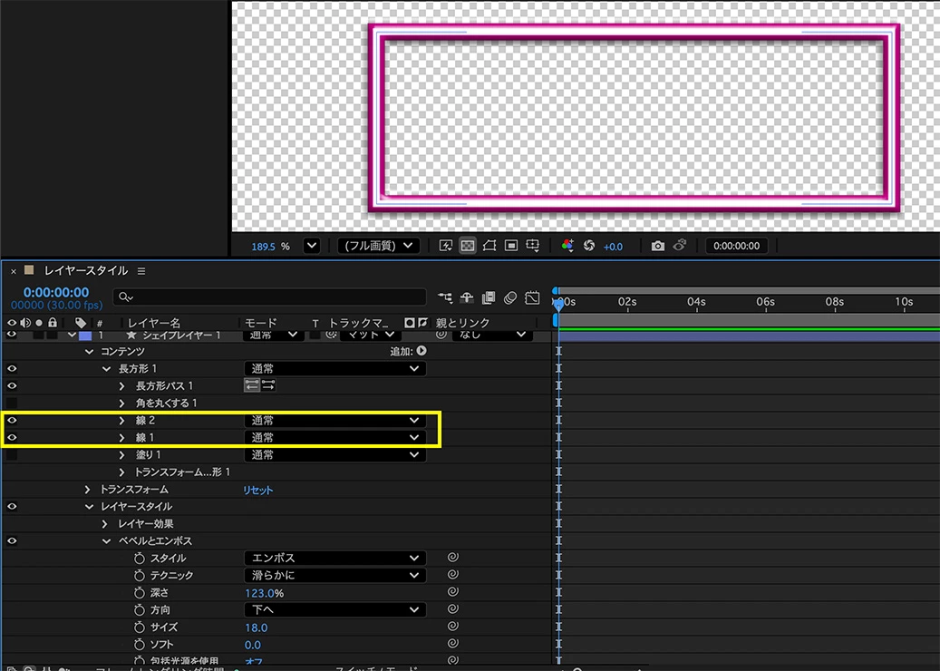 枠は、立体的になっているのでPhotoshopやAfter Effectsの「レイヤースタイル/ベベルとエンボス」という機能、