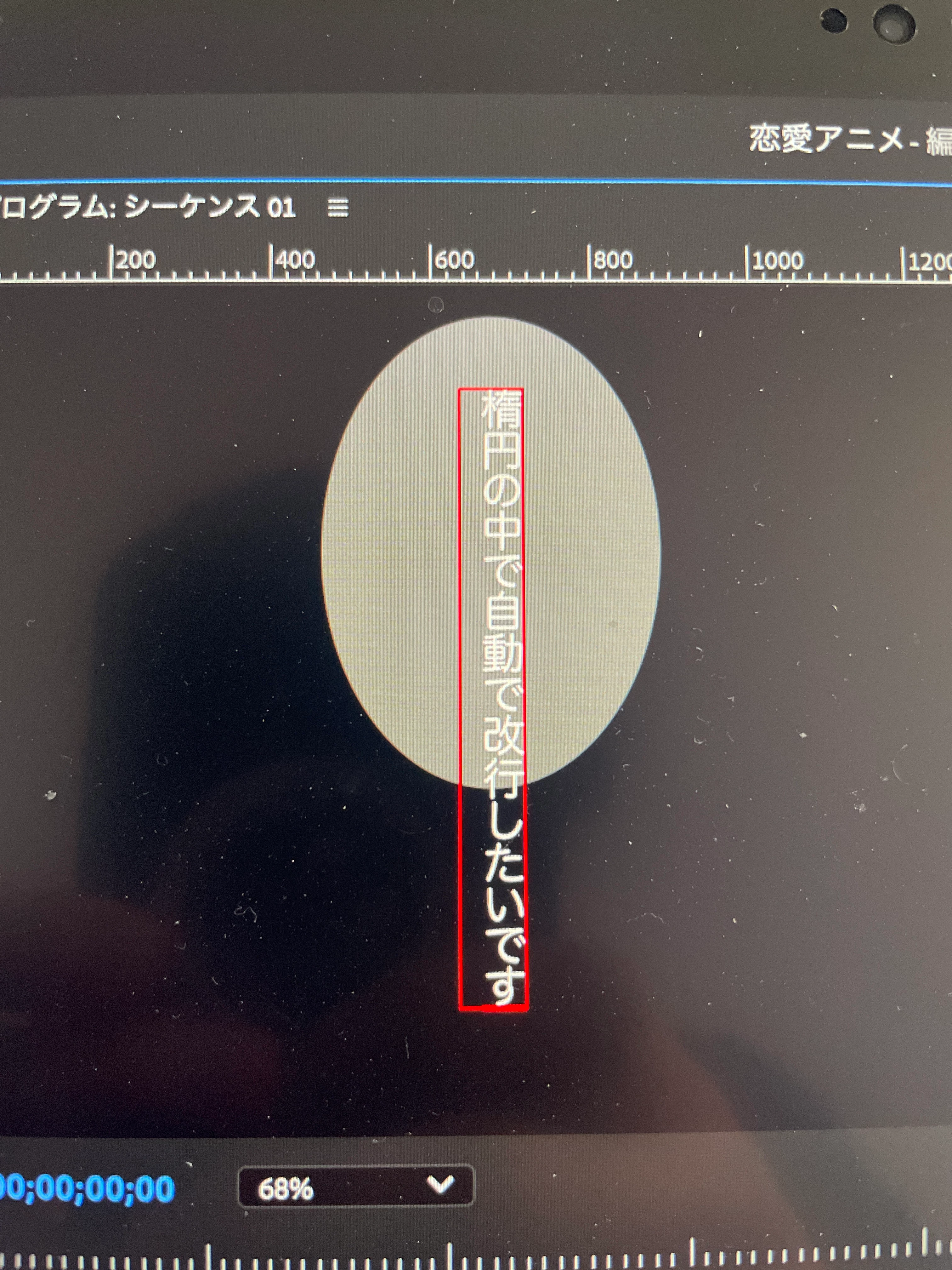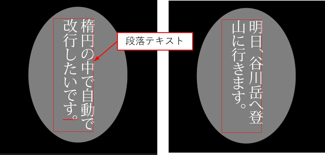 作成した楕円の中で収まるように縦方向にテキストを入力したい