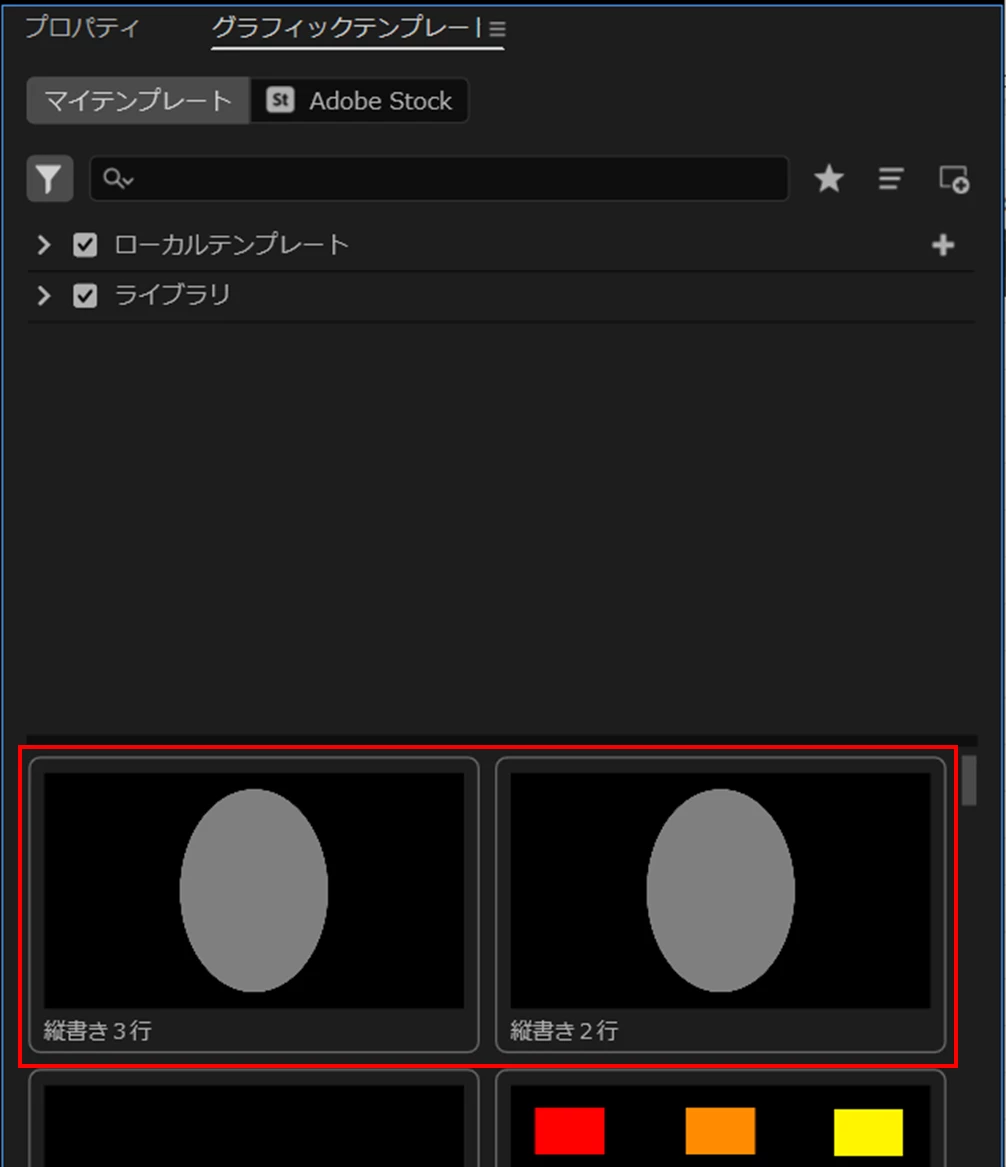 ⑤「グラフィックテンプレート」パネルに「モーショングラフィックステンプレート」が書き出されます。「テキスト入力ボックス」の赤線は見えなくなっています。